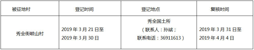 五、被征收土地四至范围内的土地所有权人、使用权人在本公告规定的期限内,持土地权属证书或其他有关证明材料,到指定的地点办理征地补偿登记,请互相转告。
