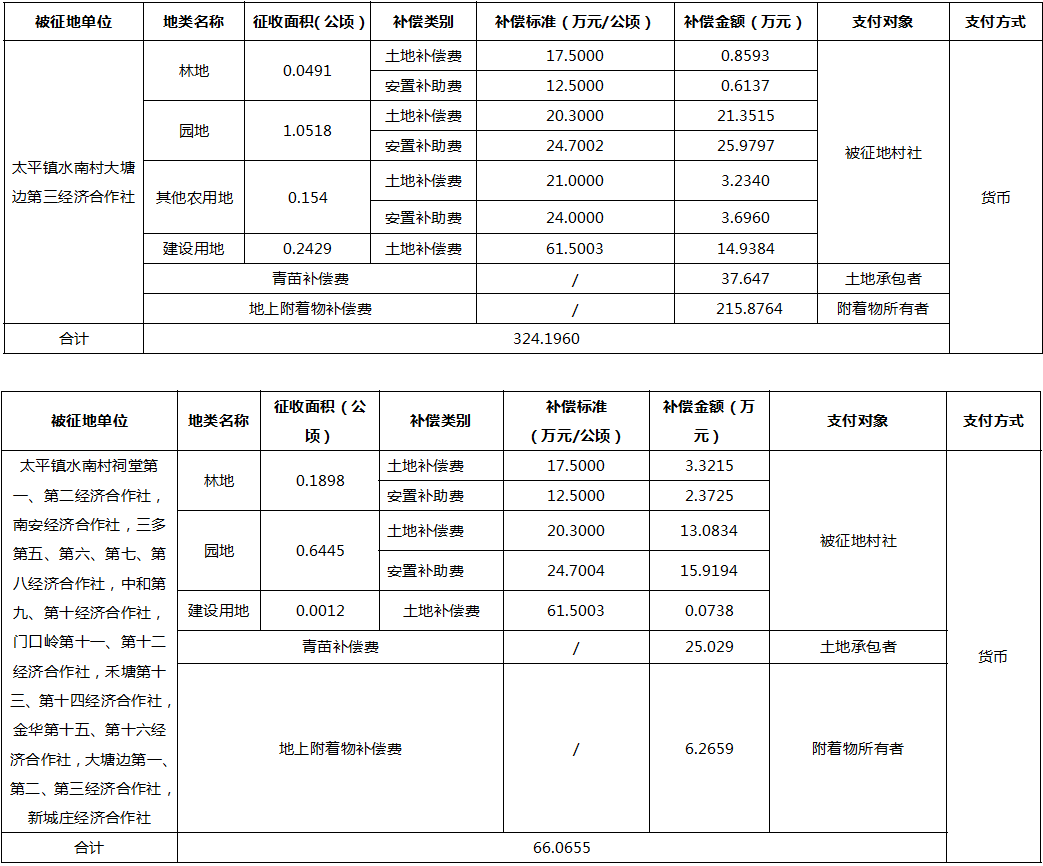 (二)本次征收土地所涉及的被安置农业人员由广州市从化区太平镇水南村以货币补偿等形式安置。