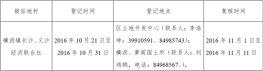 经省人民政府批准(粤国土资(建)字〔2016〕436号文),需将南沙区横沥镇义沙、长沙经济联合社44.1036公顷(合661.554亩)集体土地征收为国有土地。现将经依法批准的《征收土地方案》、市人民政府批准的《征地补偿安置方案》内容和有关事项公告如下:
