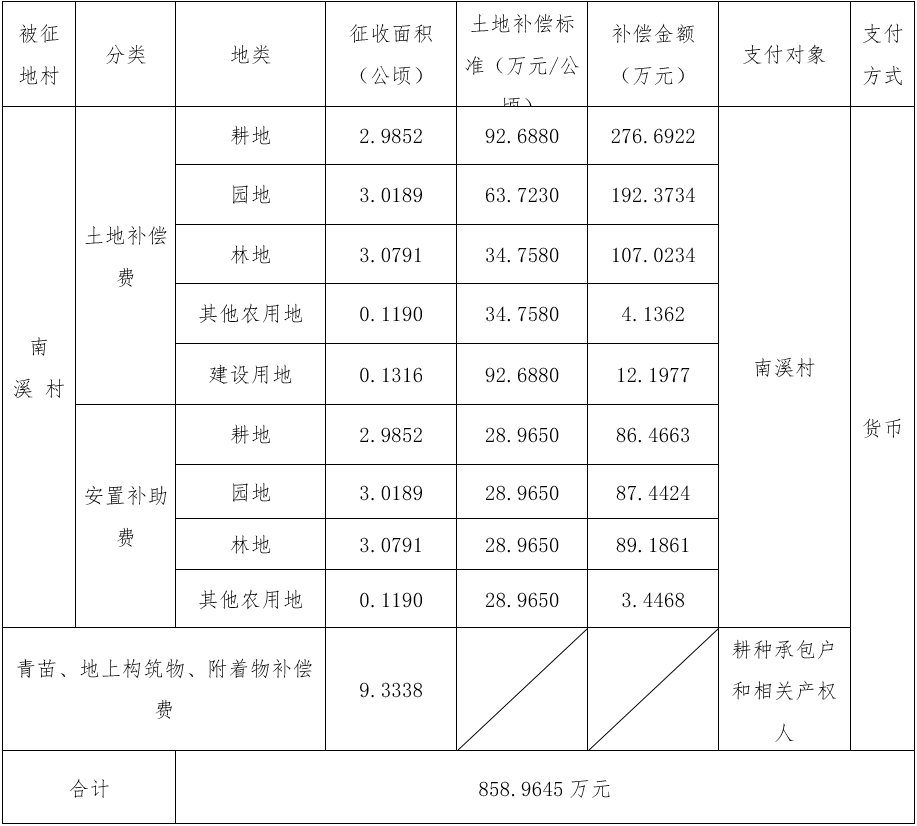 四、征地补偿安置方案: