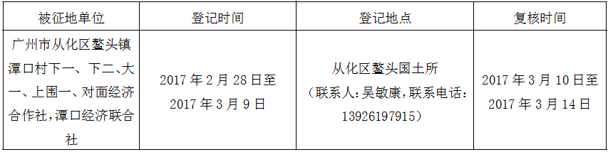 经广州市人民政府同意并经广东省人民政府批准(粤国土资(建)字〔2016〕639号)同意将广州市从化区鳌头镇潭口村地段1.9864公顷集体土地征收为国有土地。现将经依法批准的《征收土地方案》、市人民政府批准的《征地补偿安置方案》内容和有关事项公告如下: