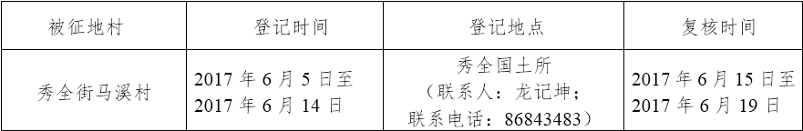 五、被征收土地四至范围内的土地所有权人、使用权人在本公告规定的期限内,持土地权属证书或其他有关证明材料,到指定的地点办理征地补偿登记,请互相转告。