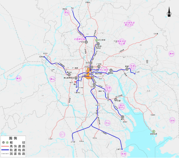 图1:荔湾区对外轨道网络示意图