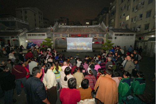 活动前,广州天河发布、珠吉文化、名城广州、广州市城市规划设计有限公司等微信公众号发布了线上预热稿,收到市民的踊跃报名。2月21日晚,结合珠吉街道举办的“公益电影惠百姓活动”开展线下预热,现场发放活动邀请函、名城保护宣传折页,播放广州名城宣传视频,火热造势。