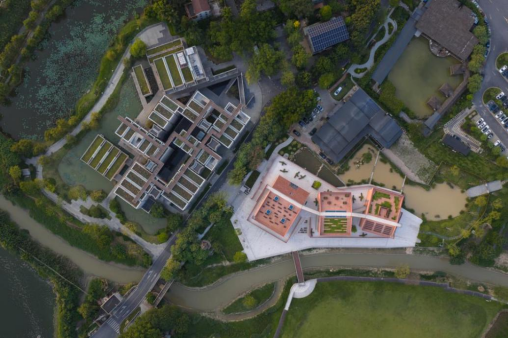 项目选址充分尊重村落的整体格局和历史风貌,以谦逊姿态,与春阳台共同融入村落地理环境中。非常建筑事务所张永和先生及其团队深入挖掘塱头村“塱”字本意——“江畔洼地”或“湖泽池塘”的地理特征,将建筑视为自然环境的有机延伸。“人地和谐”的理念贯穿始终,设计巧妙呼应了珠三角传统农业应对洪潮的智慧——建筑与桑基鱼塘交织,古籍书香与泥土气息交融,将建筑视为新的“环境适应体”,让“耕读”从抽象理念化为可感可知的日常体验。