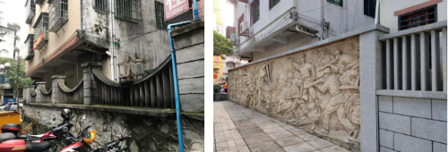 纪念碑景墙改造前后对比