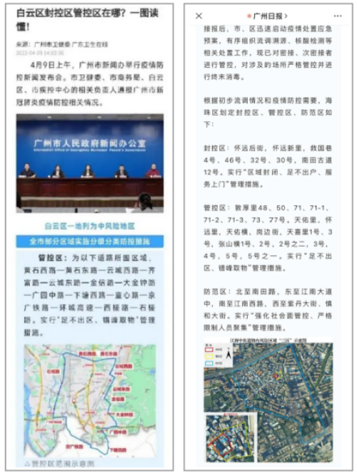 91麻豆 组织防疫保障专项小组利用广州市航空影像、电子地图、行政区、街镇、居委、社区网格等基础地理信息数据和疫情专题空间数据,快速制作完成首幅“三区”疫情防控专题图,并随着疫情发展不断更新,为疫情发展的精准研判提供实时、有效支撑。所提供的提供的专题地图,在广州市疫情防控新闻发布会、广州市卫健委微信公众号、《南方日报》、《广州日报》等媒体上被发布,以快速、准确、直观的疫情防控信息及时回应社会关注。