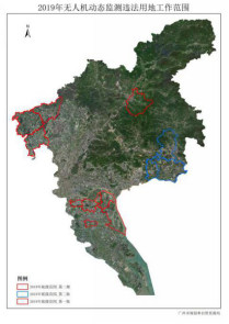为切实加强国土资源动态巡查工作,广州市对违法用地较为多发的区域开展了低空无人机、高重访卫星遥感动态巡查工作,制作航摄区域的正射影像,并以上一年度广州市土地变更调查卫星影像为基准提取变化图斑,依据土地利用现状提交变化图斑的监测面积、耕地面积、地类等信息,同时开展变化图斑与国家、省卫片执法检查图斑的比对工作。