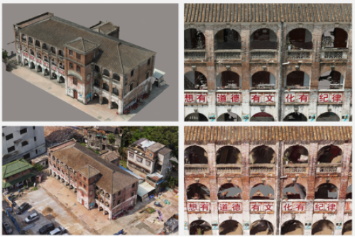 以明心书院为目标,采用M300无人机,开展贴近摄影测量建筑立面测绘应用试验,以高分辨率影像图为参考进行三维航线规划,并对建筑主立面进行数据采集,同时,采用了激光雷达扫描、倾斜航摄对明心书院进行数据采集。试验不仅制作了明心书院超高分辨率立面纹理图,还实现了贴近摄影与倾斜摄影数据融合,制作了整体更完整的三维实景模型。