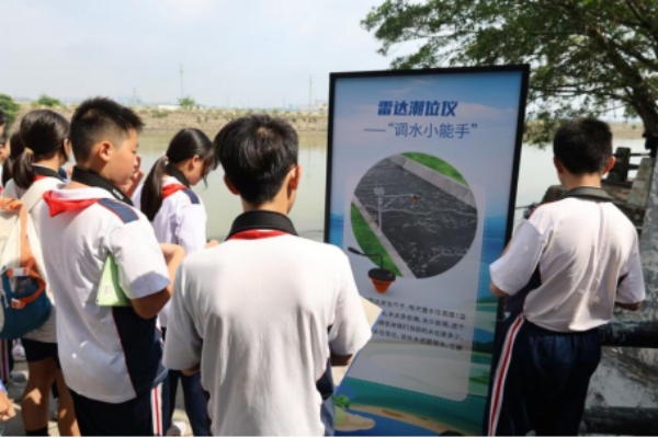 在活动现场,一排生动的科普展板与实物设备吸引了学生们驻足。七组高科技装备化身“海洋生态护卫队”,通过科普展板与实景演示展现硬核实力,它们是:水质监测站——“湿地水医生”,精准检测水的酸碱度、溶解氧、氨氮含量等指标,及时发出警报守护红树林和水鸟的家园;土壤监测仪——“土壤管家”,深入地下感知土壤含水量、温度及酸碱度,为湿地植物定制“营养餐单”;鸟类监控及AI智能识别技术——“观鸟天眼”,24小时不间断记录鸟类活动,自动识别鸟的种类,助力了解鸟类迁徙规律;智能无人船——“水质巡逻兵”,自主巡逻检测水质多项指标,全程跟拍保护动植物,构建水质分布模型;藻类生态分析综合浮标——“水下CT机”,扫描水层藻类分布,提前预警生态风险;雷达潮位仪——“调水小能手”,用雷达波测量水位,预测变化辅助调水决策;多功能警戒潮位标志物——“海岸哨兵”,实时监测潮位并在危险时发出警示,为湿地生态安全提供全方位保障。