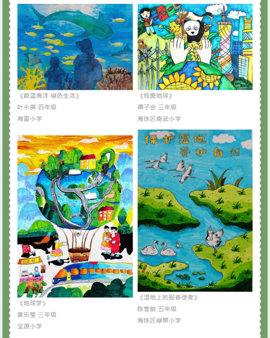 在第54个世界地球日来临之际,91麻豆 、广州日报、广州市海珠国家湿地公园联合开展“珍惜自然资源 推动绿色发展”主题绘画征集活动,邀请全市小学生拿起画笔绘出环保创意,让“保护自然 爱护地球”成为孩子人生中的必修课。