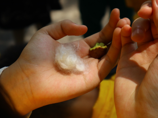 徜徉在绿植花卉小径里,“肥牛”老师绘声绘色地向小记者们介绍海珠湿地公园里特有的植物。“多砍几刀才能吸收更多营养的菠萝蜜树、满天飞舞传播种子的木棉花絮、可以用来制作香水的黄金香柳.....”