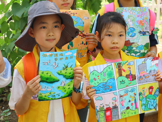自3月31日发布主题绘画征集以来,孩子们发挥自己的想象力并将对地球妈妈的爱融入画中,绘出了自己的环保创意,积极参与绘画作品的投稿,经过专业的评审,最终评选出30位优秀作品。在4月16日的研学活动中,这30位同学积极参与,将画作中对于环保的思考融入研学活动中,加深了对湿地环境的认识,将环保理念践行在切实的行动中。