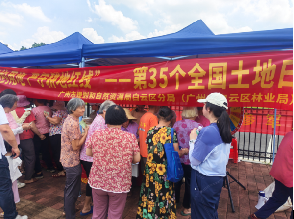 在金沙街,白云区分局开展了宣传咨询活动。现场设置咨询台,接受群众咨询,用通俗易懂的语言面对面解答群众关于耕地保护、土地利用、地质灾害防治等方面的疑惑,增强群众对于保护耕地、节约集约和依法依规用地的意识。