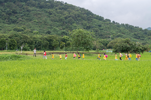 年逾六十的彭奶奶陪同孙子来参加本次研学活动。在城市中生活了十一年的她,今日看到如此郁郁葱葱的稻田,让这位老人不禁怀念起家乡的土地。中华千年稻作传统,是中国人血脉中的传承本能和文化基因。而艾米小镇中镶嵌于城市中央的千亩农田,也证明了在城市中,同样可以利用科技,闻到十里稻花香。