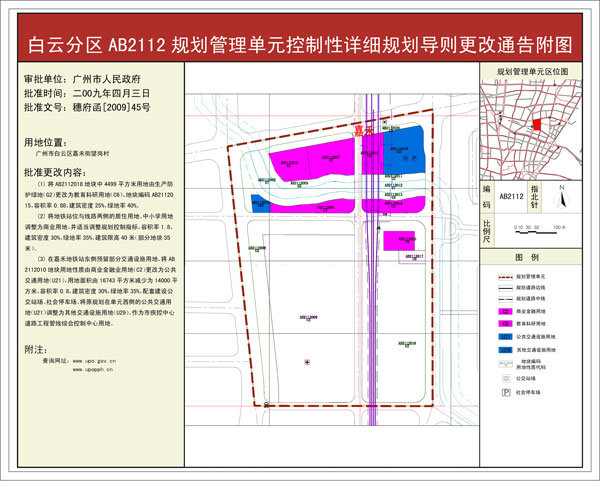 白云分区AB2112规划管理单元(广州市动物防疫监督所用地)控制性详细规划导则更改