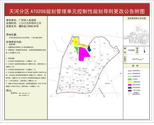 天河分区AT0208规划管理单元(广东省韶钢集团广州信息研发总部项目)控制性详细规划导则更改