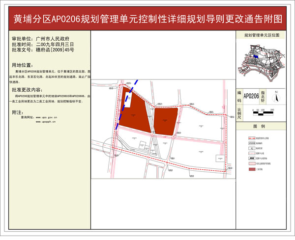 关于公布实施《黄埔分区AP0203、AP0206规划管理单元(广州本田黄埔工厂及周边地区)控制性详细规划导则更改》等六项规划成果的通告