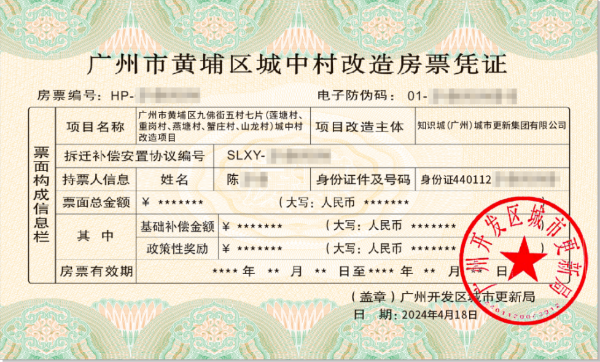 市规划和自然资源局贯彻落实省、市关于房票安置工作要求,加快推进市区两级房票实施,落实房票跨区通用,取得初步成效。黄埔区在五村七片等城中村改造项目中通过房票认购商品房2305套,面积约23.13万平方米,拟使用金额高达39.79亿元,跨区认购的房源已覆盖至增城、从化、海珠、天河、白云、南沙等区域。天河区今年7月在环五山创新策源项目中发放了一张面额一亿元的房票,刷新我市单张房票面额的最大记录。白云区、南沙区、花都区、越秀区等今年也陆续发放了房票,进一步推动城市更新、释放市场活力。