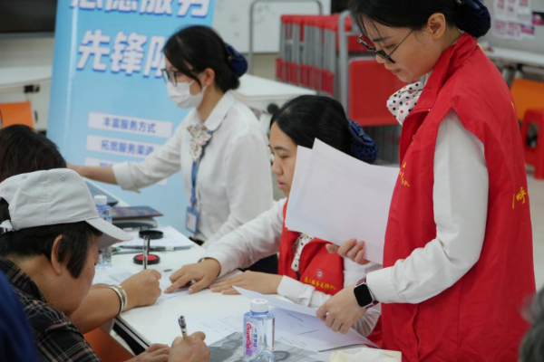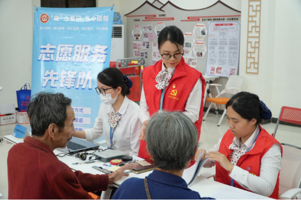 便民暖心,获得群众点赞肯定。服务当天,先锋队提前在现场设置了“咨询—预审—受理”三区,流程清晰、秩序井然。“阿姨,您别急,来坐下慢慢说。”“这份表我帮您核对过了,确认无误在这儿签字就行。”工作人员耐心细致地接待每一位前来咨询和办理的群众,用通俗易懂的语言讲解相关政策法规和办理流程,逐一审核申请材料,指导填写申请表,并现场进行询问记录;对于材料齐全、符合规定的申请,当场予以受理;对于材料暂不齐全的,则清晰告知需要补充的内容或材料及后续办理方式。