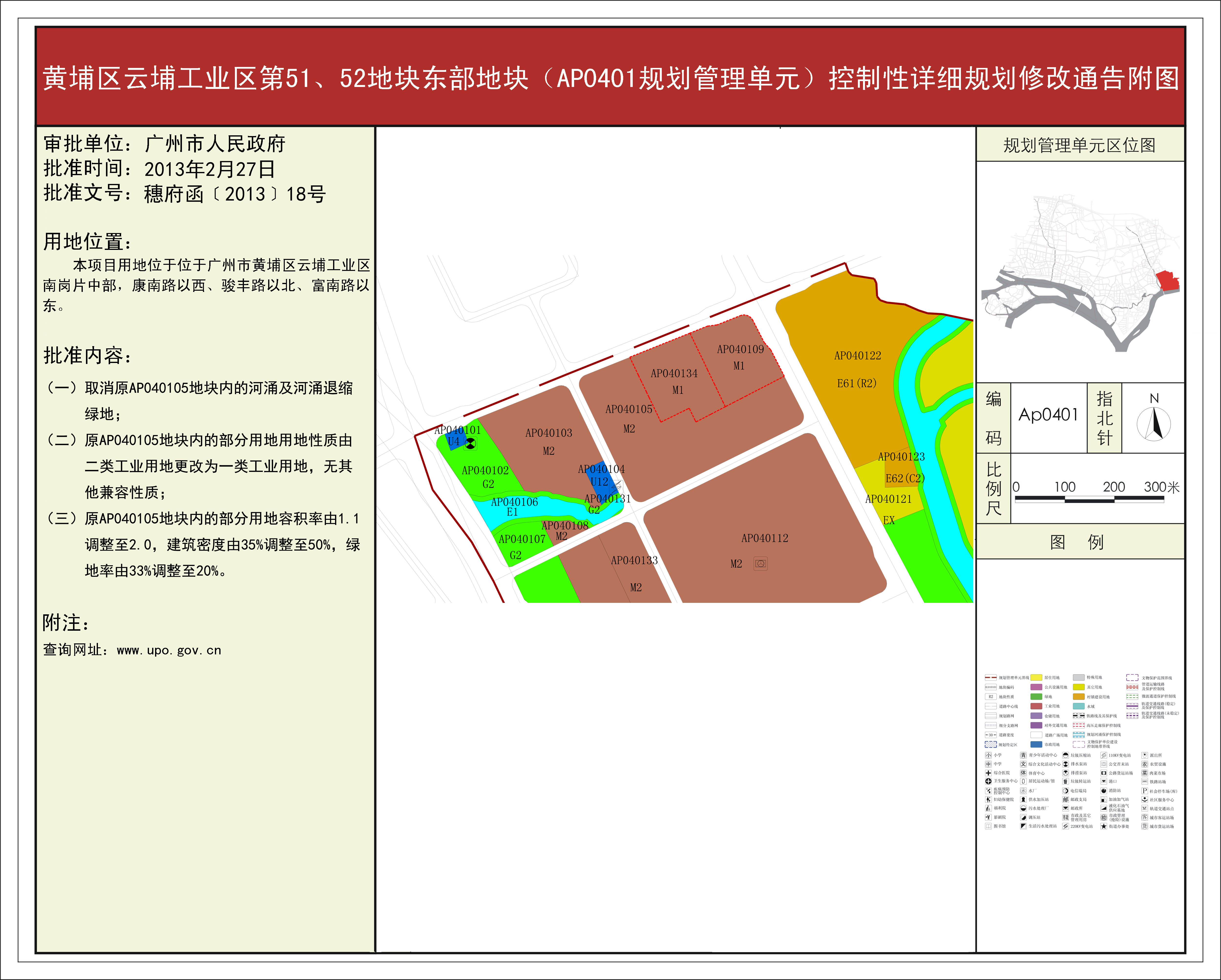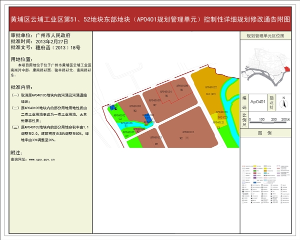 黄埔区云埔工业区第51、52地块东部地块(AP0401规划管理单元)控制性详细规划修改通告