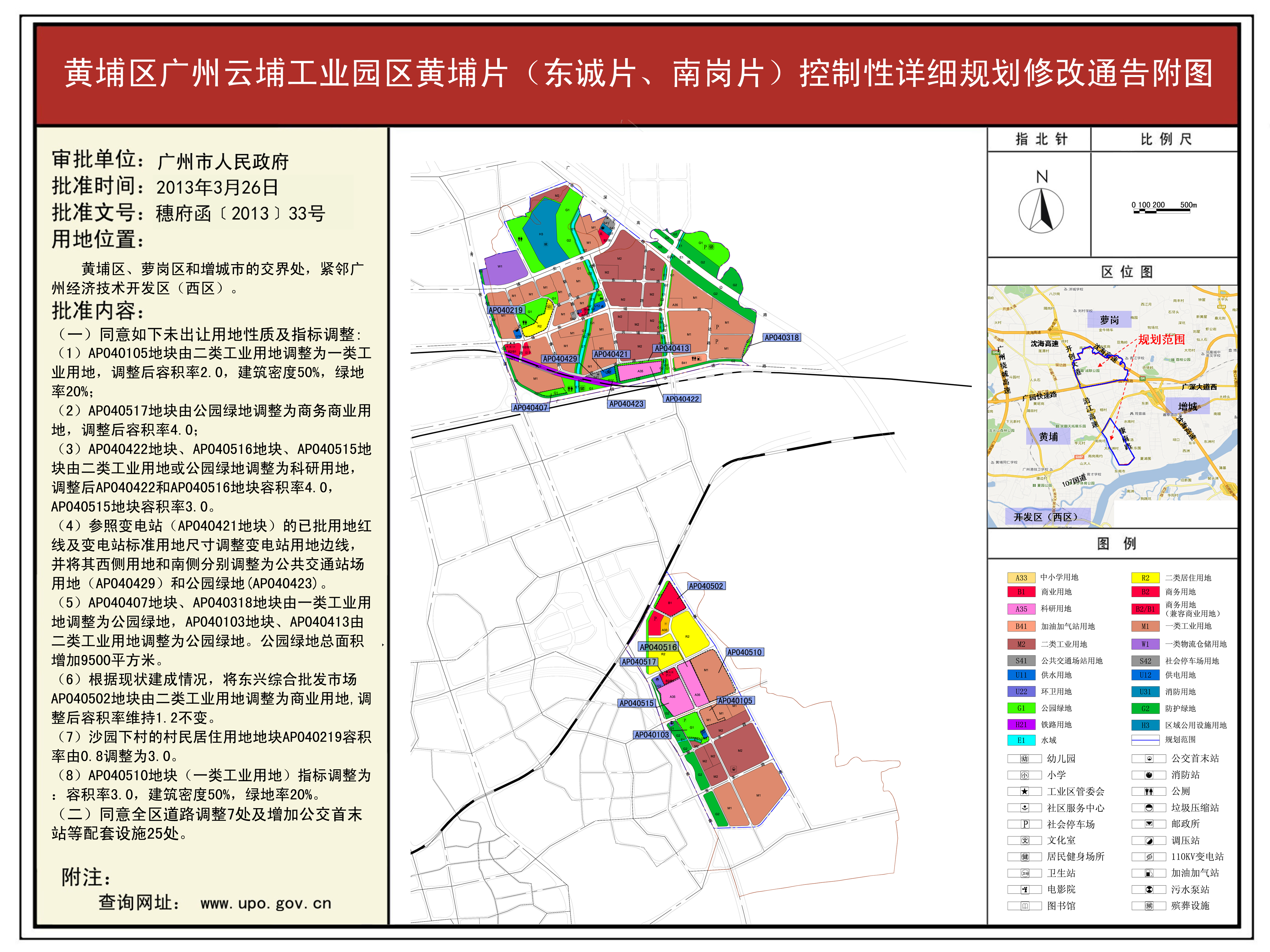 黄埔区广州云埔工业园区黄埔片(东诚片、南岗片)控制性详细规划修改通告