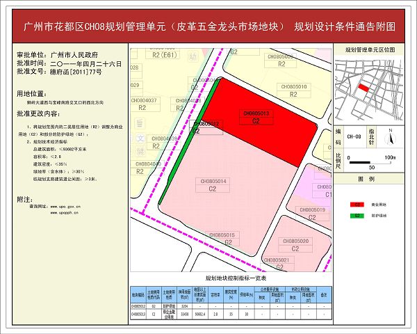 广州市花都分区CH08管理单元(皮革五金龙头市场地块)规划设计条件论证