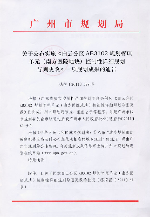 白云分区AB3102规划管理单元(南方医院地块)控制性详细规划导则更改