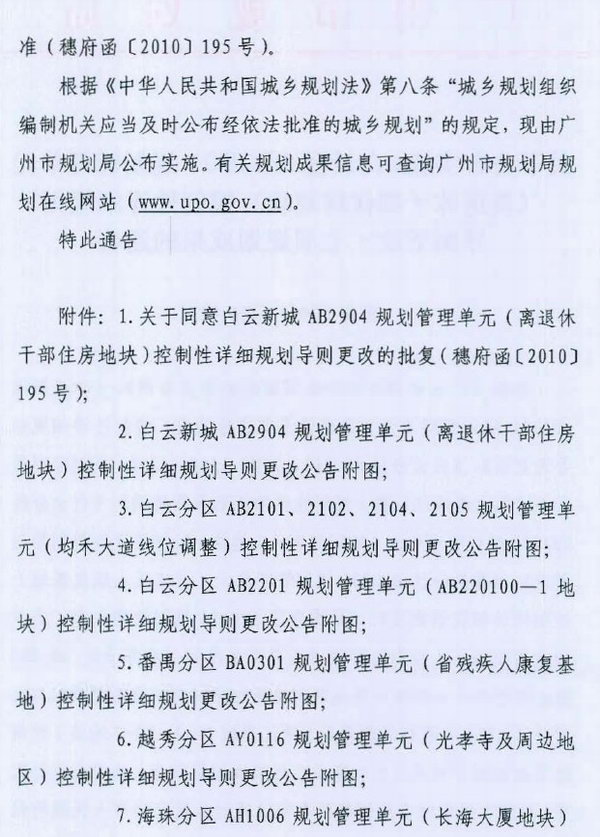 番禺分区BA0301规划管理单元(省残疾人康复基地)控制性详细规划更改