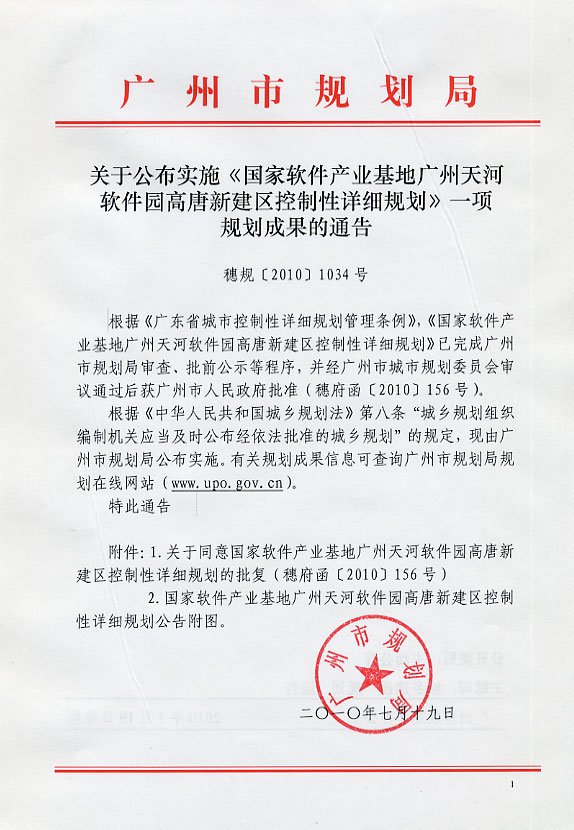 国家软件产业基地广州天河软件园高唐新建区控制性详细规划