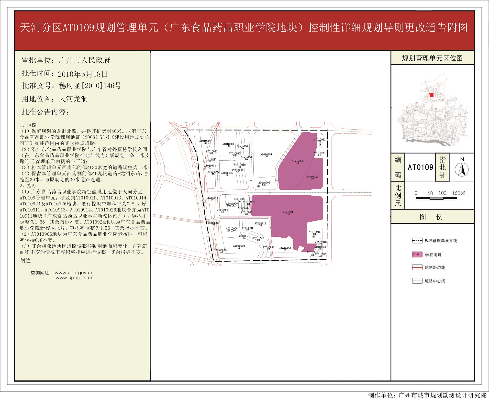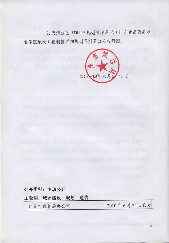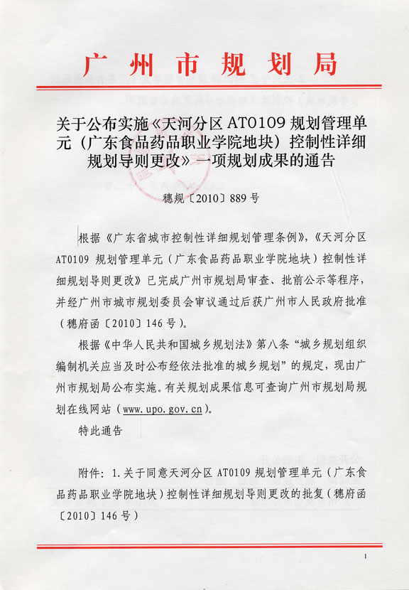 天河分区AT0109规划管理单元(广东食品药品职业学院地块)控制性详细规划导则更改