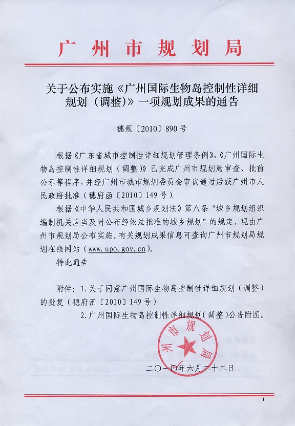 广州国际生物岛控制性详细规划(调整)公告