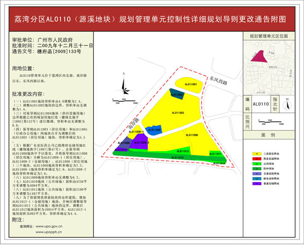 荔湾分区AL0110规划管理单元(源溪地块)控制性详细规划导则更改