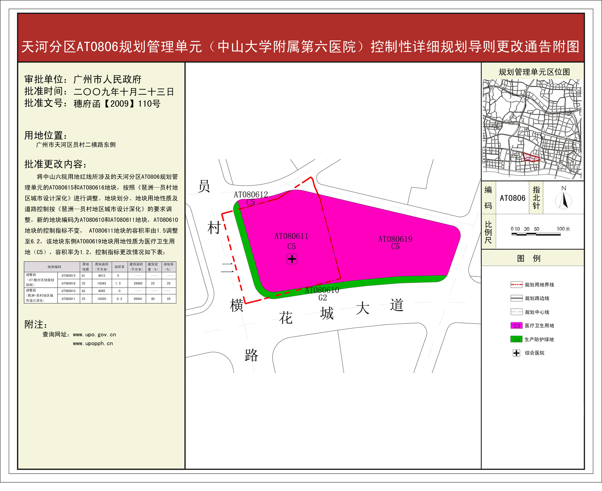 天河分区AT0806规划管理单元(中山大学附属第六医院)控制性详细规划导则更改