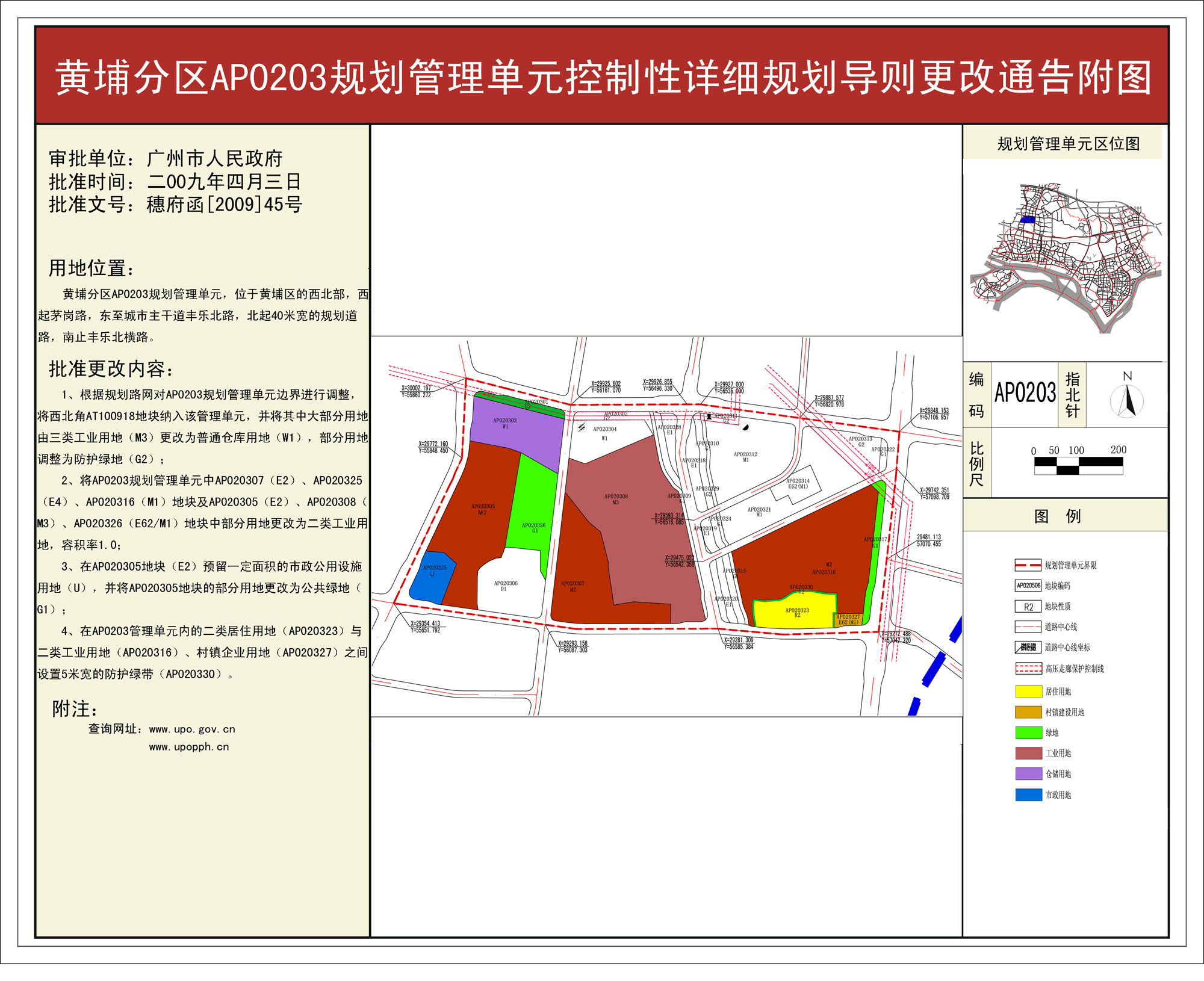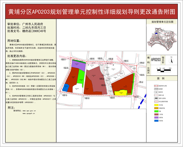 关于公布实施《黄埔分区AP0203、AP0206规划管理单元(广州本田黄埔工厂及周边地区)控制性详细规划导则更改》等六项规划成果的通告