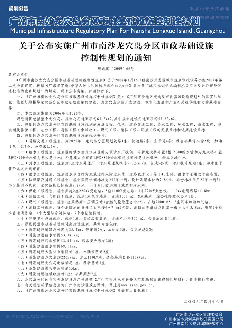 广州市南沙龙穴岛分区市政基础设施控制性规划