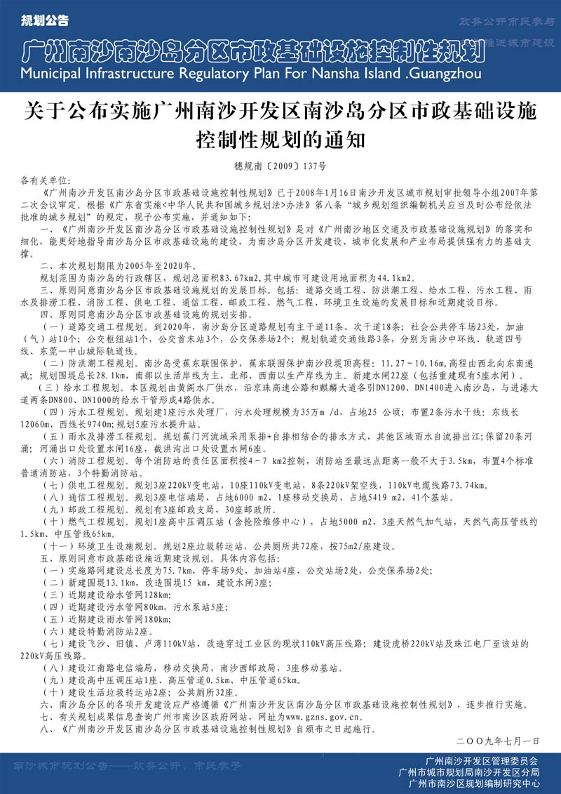 广州市南沙南沙岛分区市政基础设施控制性规划