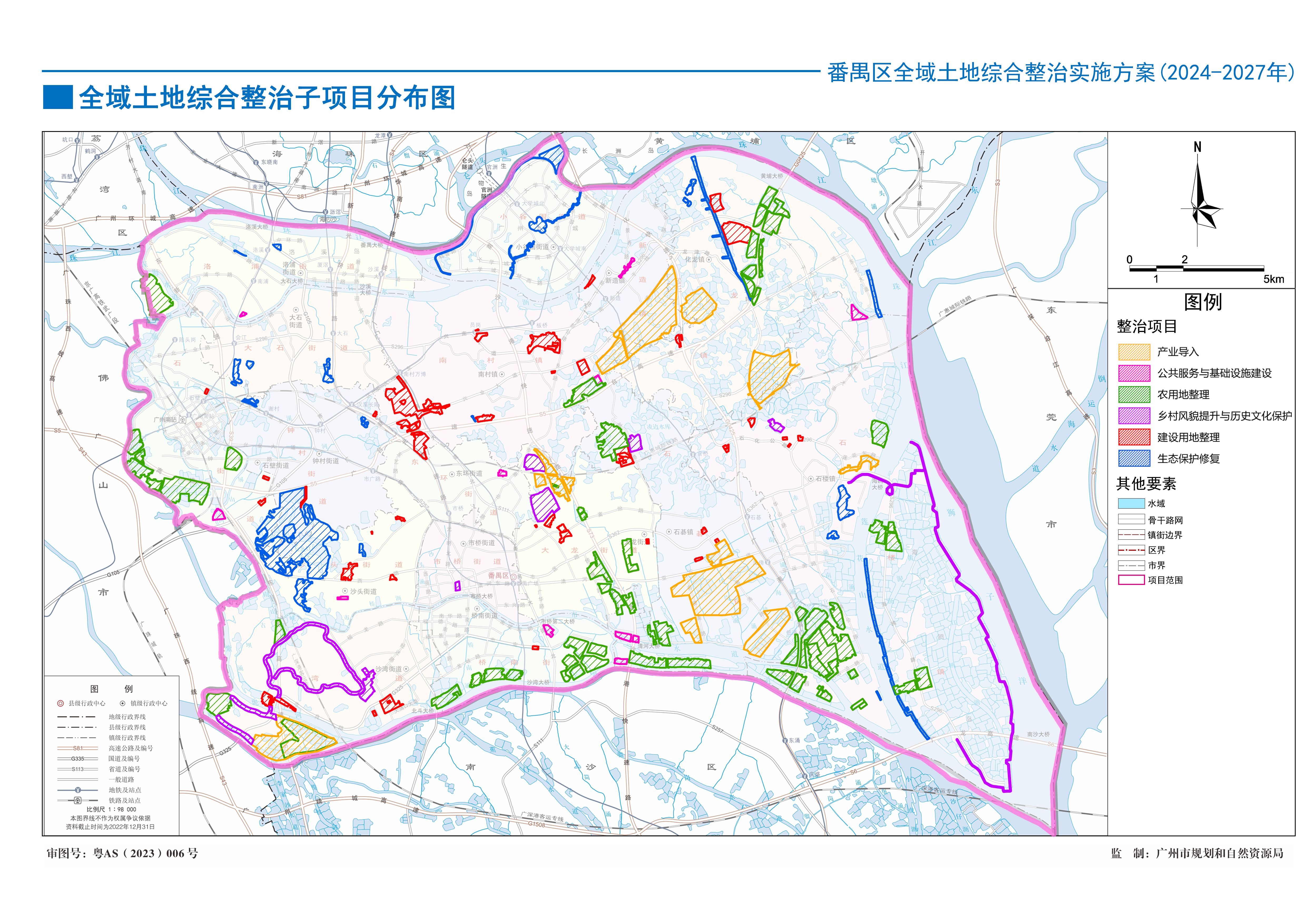 根据《广东省自然资源厅关于加快推进全域土地综合整治有关工作的通知》、《广东省自然资源厅关于推进全域土地综合整治扩面提质的通知》等文件要求,为促进番禺区城乡土地资源有序有效流动和高效集约配置,为新质生产力、新进制造业腾空间、创活力,推动“百千万工程”高质量发展工程和“绿美番禺”生态建设,以产业集聚和发展新质生产力为重点,打造“良田连片、村庄集中、产业集聚、生态优美”的土地利用保护新格局,助推乡村振兴,全区协同高质量发展,最终实现番禺区国土空间“智造创新引领区”“优质生活圈示范区”“广府文化发祥地”宏伟蓝图,结合全域土地综合整治政策及番禺区实际情况,我区组织编制了《番禺区全域土地综合整治实施方案(2024-2027年)》(以下简称为《实施方案》)。具体建设内容和实施安排如下: