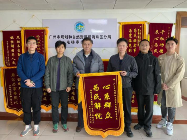 聚龙新街某号加建电梯工程因初步方案严重遮挡住户采光,业主间存在较大分歧,设计长期悬置。海珠区分局多次现场踏勘并调解,最终推动采用全透明玻璃方案,成功化解持续多年的“拉锯战”。该工程于2024年初获得建设工程规划许可证,现已建成投入使用,业主专程送来锦旗致谢。