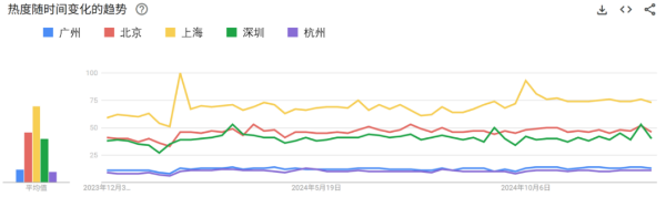 图14:2024年广州、北京、上海、深圳、杭州谷歌搜索指数