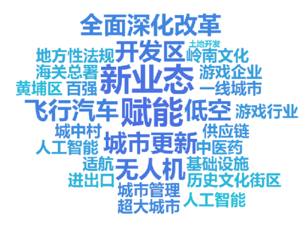 从关注领域来看,2024年广州的新业态、全面深化改革、城市更新等重大战略与政策最受关注,无人机、飞行汽车、低空经济等广州特色新业态,以及广州作为超大城市在城市治理、高质量发展等方面的成效,也成为广州的特色标签。