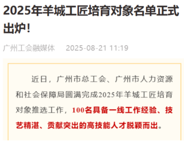 链接:2025年羊城工匠培育对象名单正式出炉!