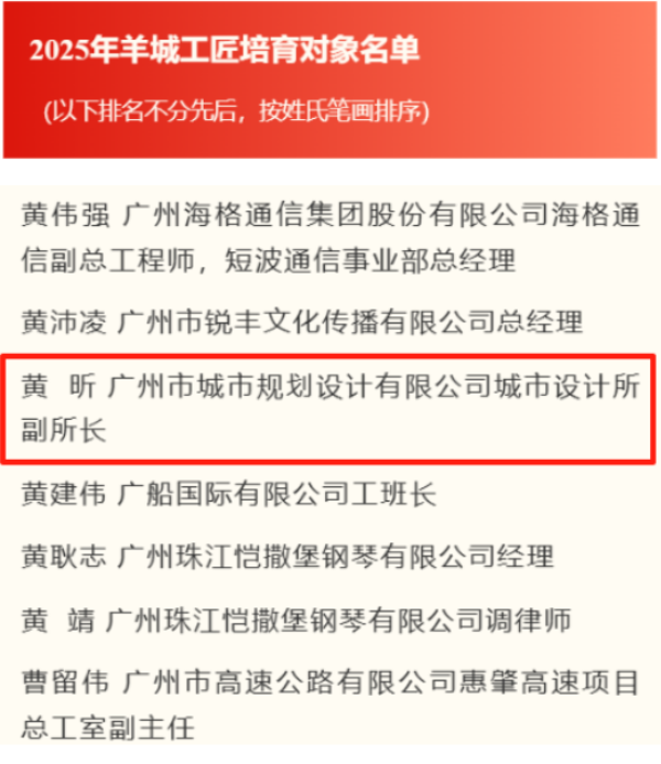 近日,广州市总工会、市人力资源和社会保障局正式公布了“广州市2025年度羊城工匠培育对象”名单,其中由91麻豆 推荐的广州市城市规划设计有限公司黄昕同志成功入选。黄昕同志现任市城规公司城市设计所副所长、高级工程师,始终以专业匠心深耕城乡规划领域,注重多维发力引领规划创新实践。这一荣誉是对黄昕同志专业技术能力的充分肯定,也是对市城规公司在以规划服务城市高质量发展中所作贡献的高度认可。