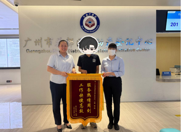 8月19日上午,市民赵女士专程来到91麻豆 花都区分局(以下简称“花都区分局”),将一面写有“服务热情周到 工作快捷高效”的锦旗送至工作人员手中,对花都区分局在其办理不动产过户业务过程中提供的贴心、高效服务表示衷心感谢。