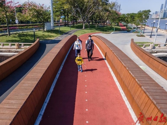 带孩子在碧道上玩耍的刘女士告诉记者:“这里的环境好,空气好,交通又方便。有轨电车就在旁边,还能晒到太阳,比室内的游乐园更适合孩子。”刘女士表示,小桥最好的地方就是设计了供人休憩的空间,“孩子在旁边疯玩的时候,我可以坐下来看看两边的风景、看看江上的白鹭。”