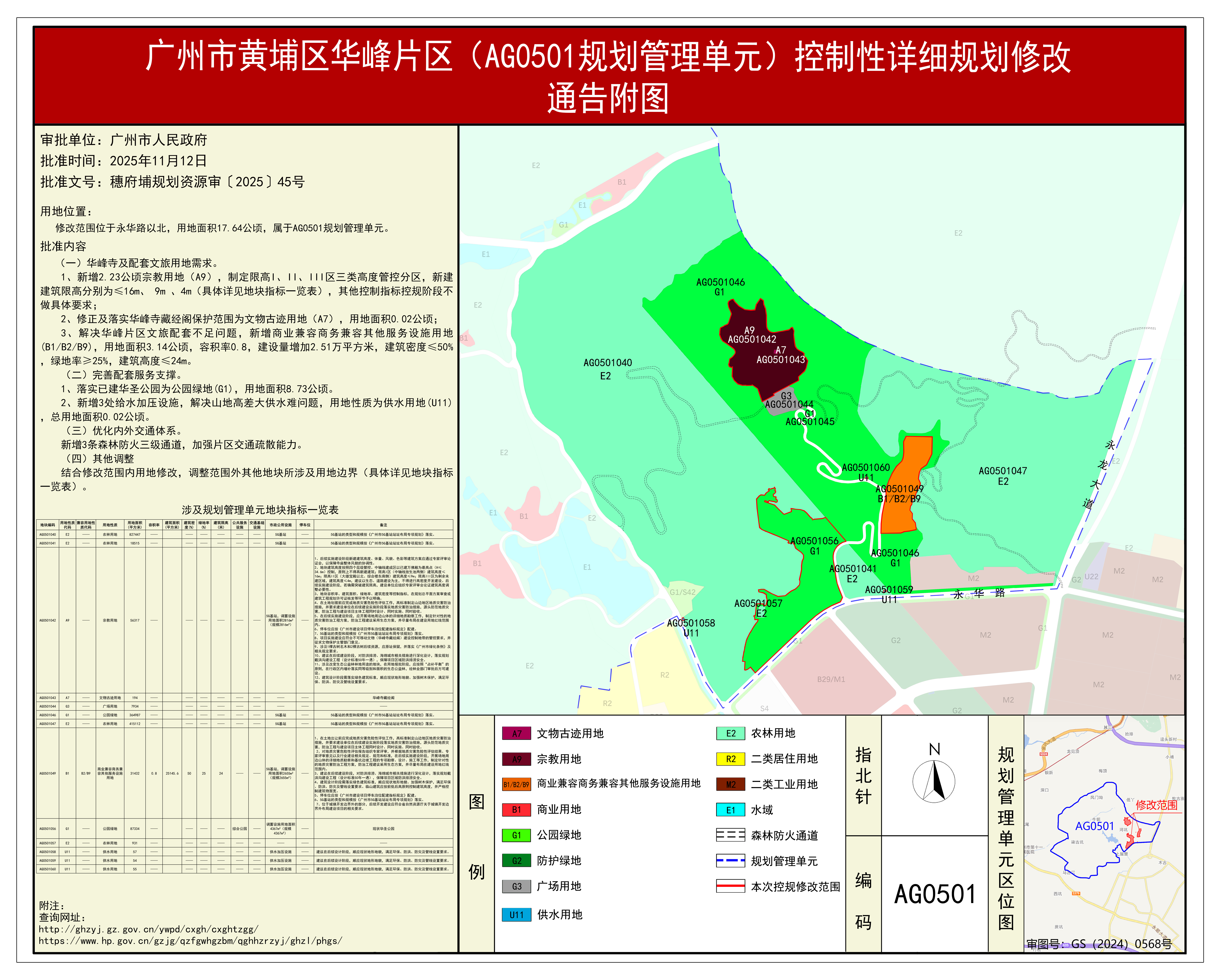 2.广州市人民政府关于同意黄埔区华峰片区(AG0501规划管理单元)控制性详细规划修改的批复(穗府埔规划资源审〔2025〕45号)