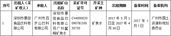根据广东省国土资源厅《关于取消采矿权出租审批和采矿权抵押备案的通知》(粤国土资矿管发〔2012〕164号)有关规定,现将我委2017年5月采矿权出租备案信息公告如下: