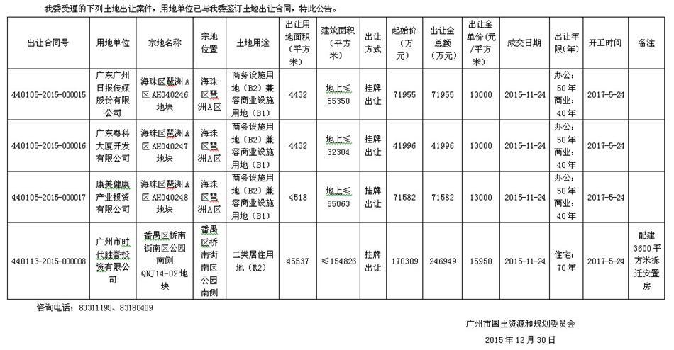 广州市国有建设用地使用权出让公告(海珠区琶洲A区AH040246等4宗地块)