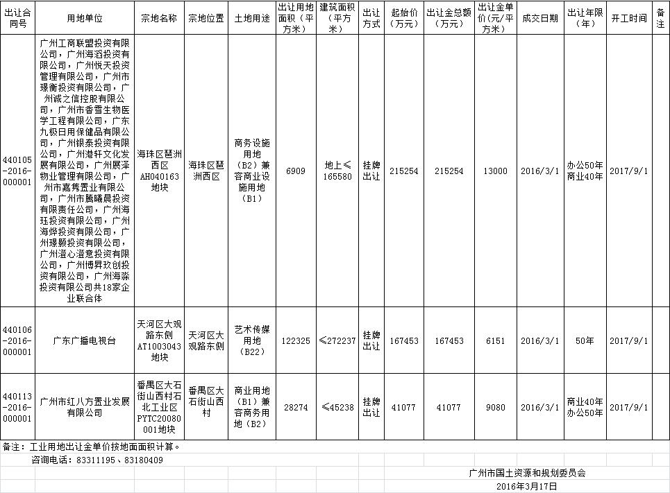 广州市国有建设用地使用权出让公告(AH040163地块、AT1003043地块、YTC20080001地块)