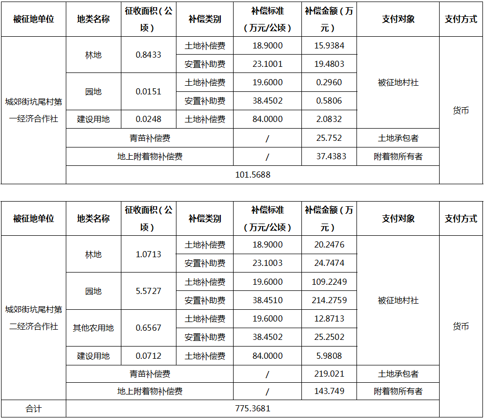 (二)本次征收土地所涉及的被安置农业人员由广州市从化区城郊街坑尾村第一、第二经济合作社以货币补偿等形式安置。